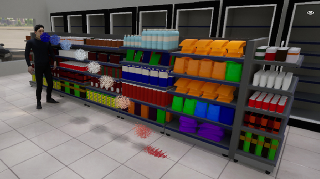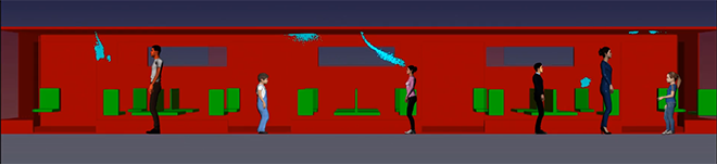 Animaciones en 3D recrean la trayectoria de partículas de saliva en espacios como un vagón del Metro, una tienda de conveniencia y una casa habitación.