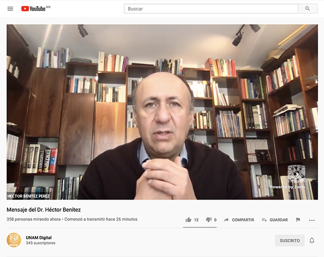 La reunión virtual se llevó a cabo al regreso del periodo de asueto, el pasado 27 de julio y se conectaron 368 miembros de la dependencia por vía remota. El video del mensaje, que cuenta con más de 700 vistas, se encuentra disponible en el canal oficial de la DGTIC en Youtube (UNAM Digital).