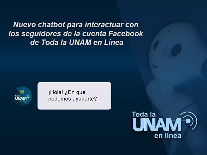 Al iniciar el mes de julio, la Dirección de Colaboración y Vinculación (DCV), a través de su Subdirección de Visibilidad Web, puso en operación la primera versión de un robot de respuestas automatizadas en la cuenta institucional Toda la UNAM en Línea, en Facebook.
