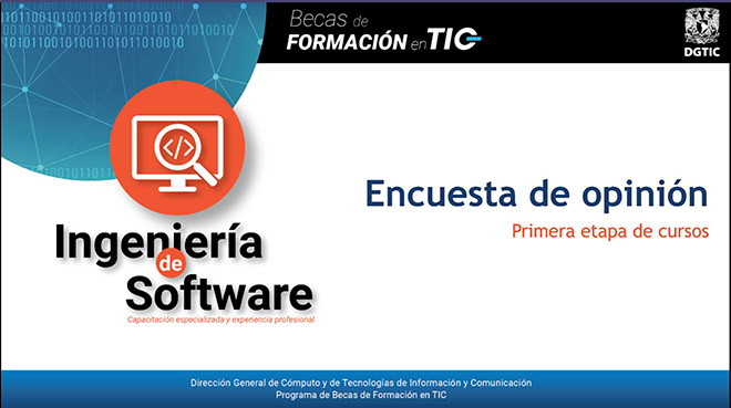 Con el objetivo de obtener retroalimentación sobre el desarrollo de cursos, la comunicación y la efectividad del aprendizaje, al finalizar la primera etapa del Plan de Formación en Ingeniería de Software de la Dirección de Colaboración y Vinculación, se realizó una encuesta de opinión a los pre-becarios que ingresarán a esta línea de especialización.