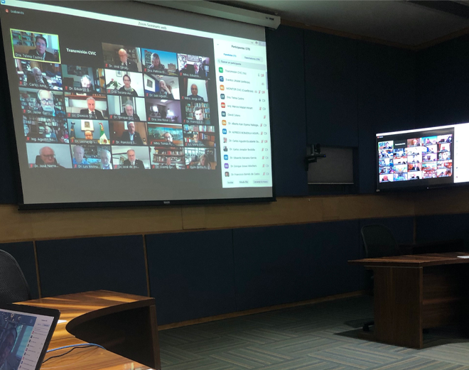 La reunión virtual se llevó a cabo a través de la plataforma Zoom Webinar, operada por el departamento de Comunicaciones Audiovisuales, la cual permitió la conexión del Dr. Leonardo Lomelí Vanegas, como moderador, del Rector Dr. Enrique Graue Wiechers, y los doctores Carlos Amador Bedolla, Susana Magallón Puebla, Eduardo Bárzana García, Julia Carabias Lillo, Francisco Barnés de Castro, José Sarukhán Kermez, Luis Molina, y Telma Castro Romero, como oradores del homenaje, además de 565 invitados conectados a la plataforma.
