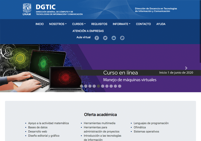 Para una mejor visibilidad de los cursos en línea que ofrece la DGTIC, desde el 25 de mayo se actualizó el sitio web que contiene información de la modalidad de aprendizaje en línea, que se imparte a través de la Dirección de Docencia en TIC.
