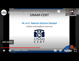 Ver otros números del Boletín Créditos Boletín informativo para el personal de la DGTIC Boletín 07, 17 de agosto de 2020 Apoya la DGTIC a la sesión plenaria del Consejo Universitario Dr. Héctor Benítez Pérez, nuevo presidente del Consejo Asesor Se evalúan nuevas solicitudes para ingresar al PRIDE Primera reunión del Director General con académicos de la DGTIC Concluye aplicación de exámenes extraordinarios en la ENP a través de Moodle “La DGTIC debe crecer, desarrollarse y consolidarse”. Dr. Héctor Benítez Ante COVID-19, DGTIC contribuye a visibilizar en 3D la dispersión de saliva Personal de FES Aragón y Facultad de Ingeniería colabora con DGTIC en proyecto de voto electrónico para el INE Inicia seminario TIC vía Webconference Reconocimiento a los participantes del curso Diseño Instruccional Nuevo chatbot en Facebook de Toda la UNAM en Línea UNAM CERT presente en el Segundo día Virtual de Ciberseguridad Atención a solicitudes de compra de las partidas 514 y 249 Becario de la DGTIC imparte clase virtual durante la contingencia Retroalimentación contribuye a la mejora del Programa de Becas en Ingeniería de Software