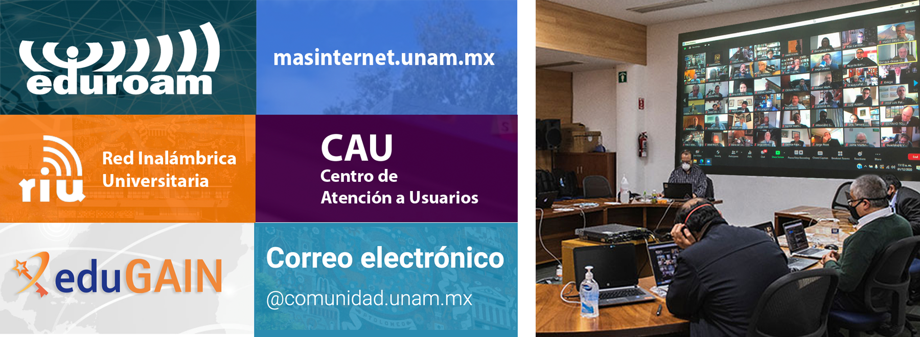 Eso dio lugar a la apertura de un chat en línea con el apoyo de 65 personas, para atender las demandas de servicios tales como: MasInternet, RIU, Eduroam, Edugain, correo electrónico, cursos, diplomados y becas, a más de 100 mil personas.