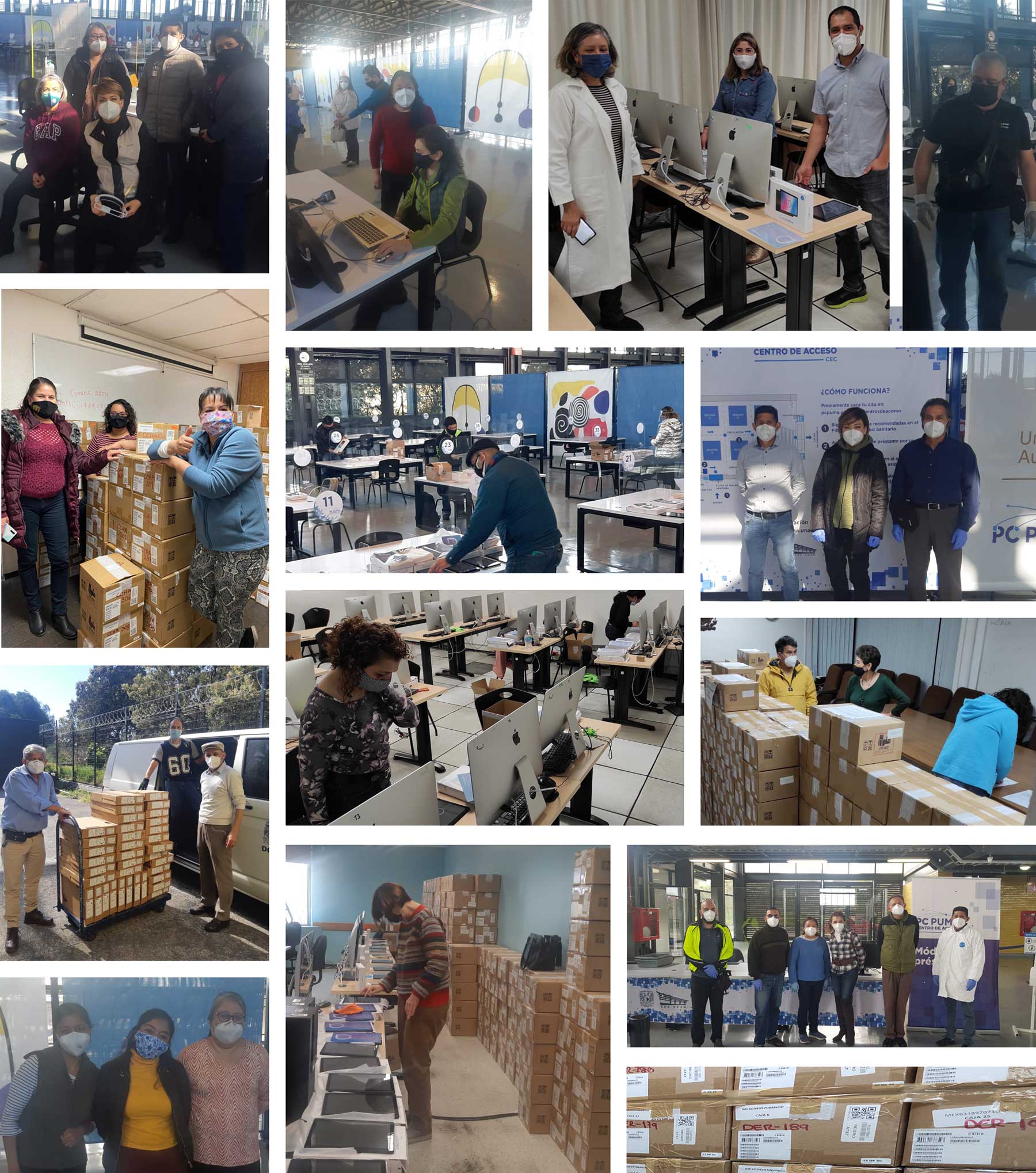 Decenas de compañeros se registraron en los diversos grupos de apoyo, para configurar más de 310 computadoras portátiles y 4,200 chromebooks para los Centros de Acceso PC PUMA, mientras que paralelamente, se desarrollaba el Sistema de Préstamo de equipos de cómputo en los Centros de Acceso de 14 espacios universitarios y se impartía capacitación al personal responsable de atender a la comunidad universitaria.