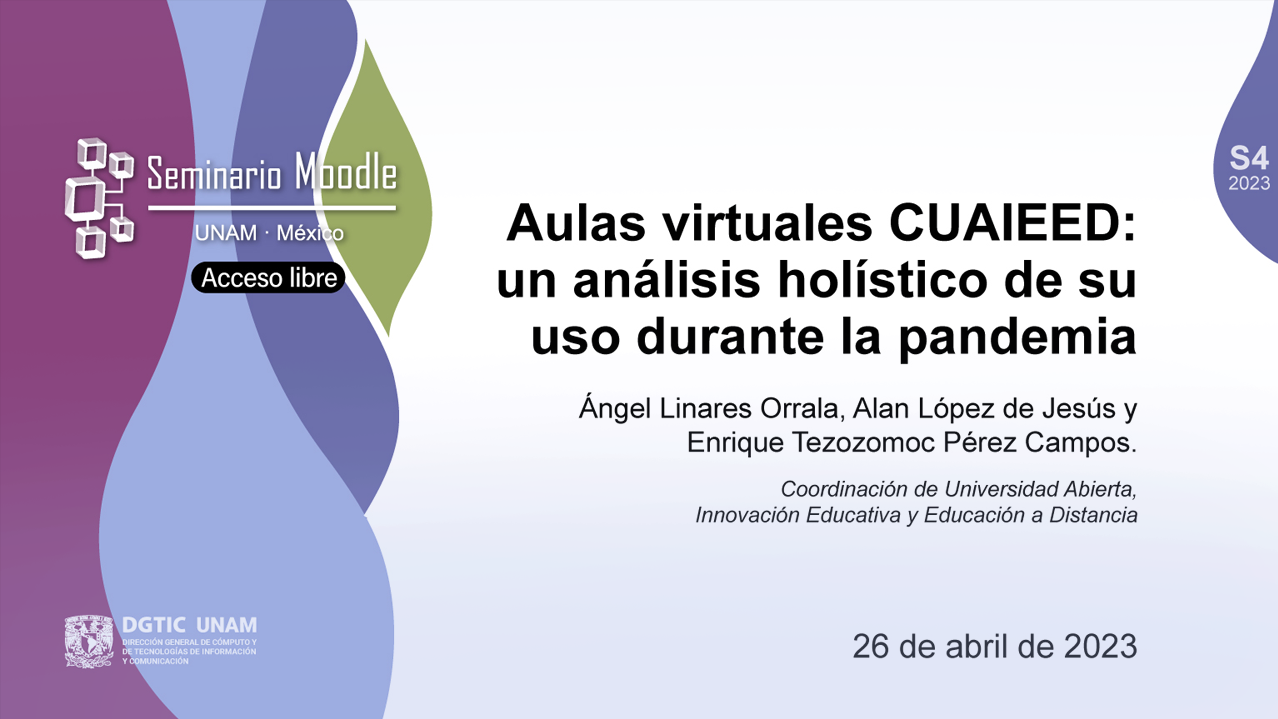 ¿Qué ha pasado con las aulas virtuales de la Coordinación de Universidad Abierta, Innovación Educativa y Educación a Distancia de la UNAM (CUAIEED)? Este cuestionamiento dio nombre a la sesión de abril del Seminario Moodle, en la que Ángel Linares, licenciado en Ciencias de la Computación y desarrollador de sistemas en la Dirección de Desarrollo de Sistemas para la Educación en la CUAIEED, recordó que uno de los retos a los que se enfrentaron fue hacer interfaces de “un solo clic”, es decir, intuitivas y fáciles de navegar, tanto para estudiantes como para el profesorado.