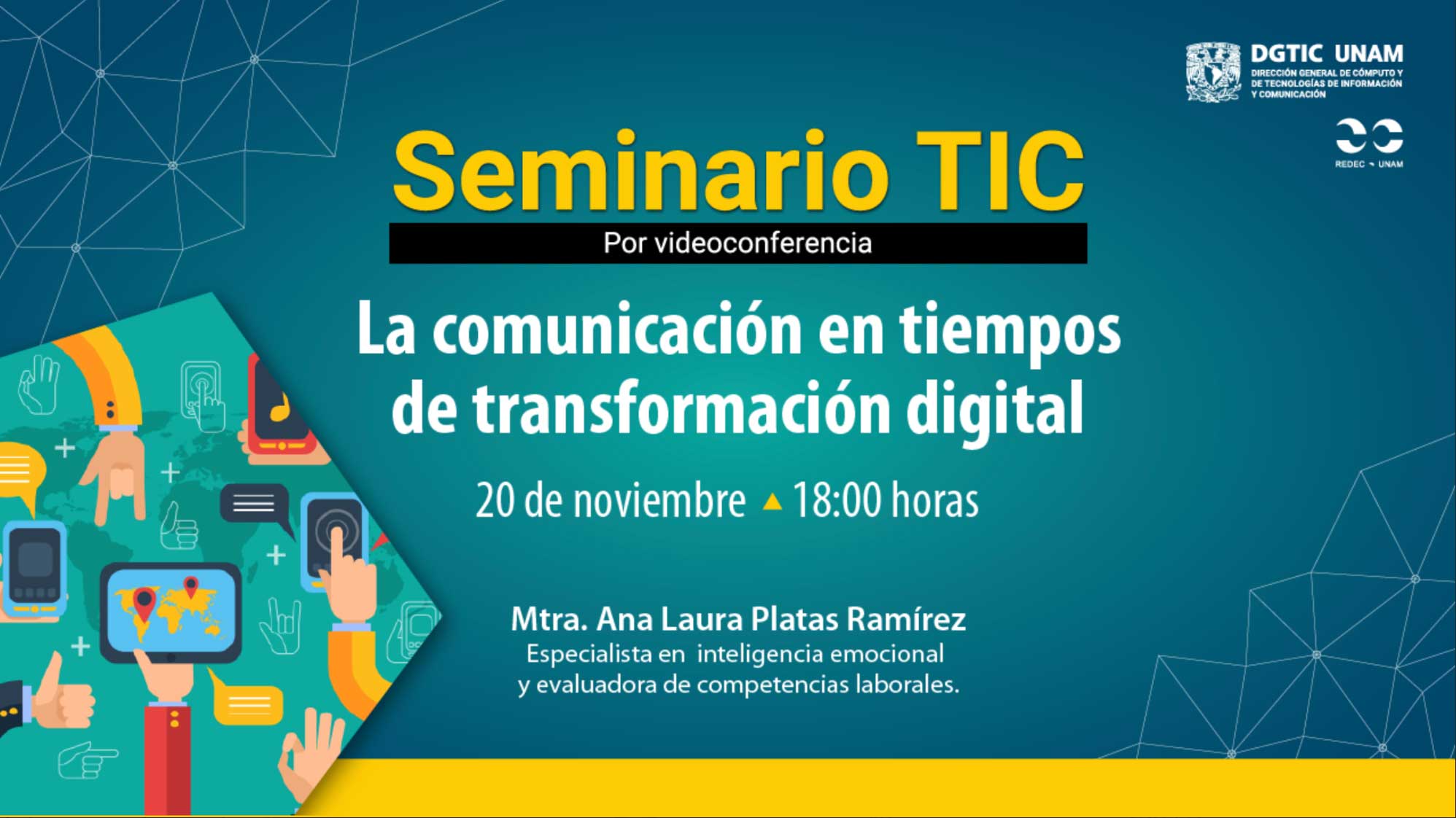 Durante el Seminario TIC, organizado por la Dirección General de Cómputo y de Tecnologías de Información y Comunicación (DGTIC), la maestra Ana Laura Platas Ramírez, experta en competencias directivas e inteligencia emocional, explicó que las tecnologías no sólo cambian las herramientas con las que trabajamos, sino que pueden modificar radicalmente la forma de comunicarnos.