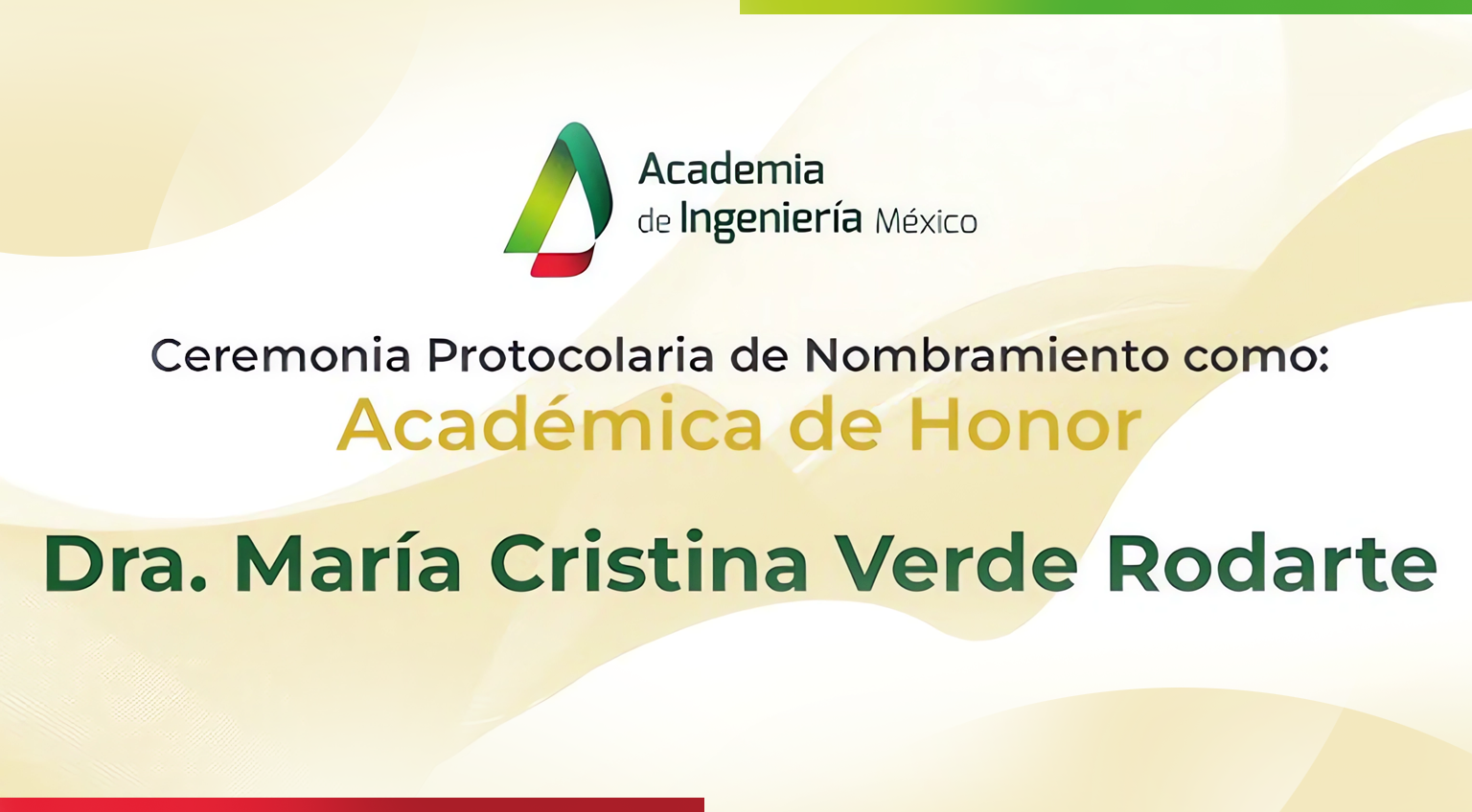 La Academia de Ingeniería México reconoció a la doctora María Cristina Verde Rodarte, investigadora del Instituto de Ingeniería de la UNAM, como Académica de Honor, un tributo a su destacada trayectoria.