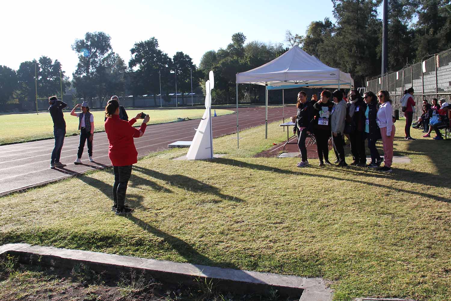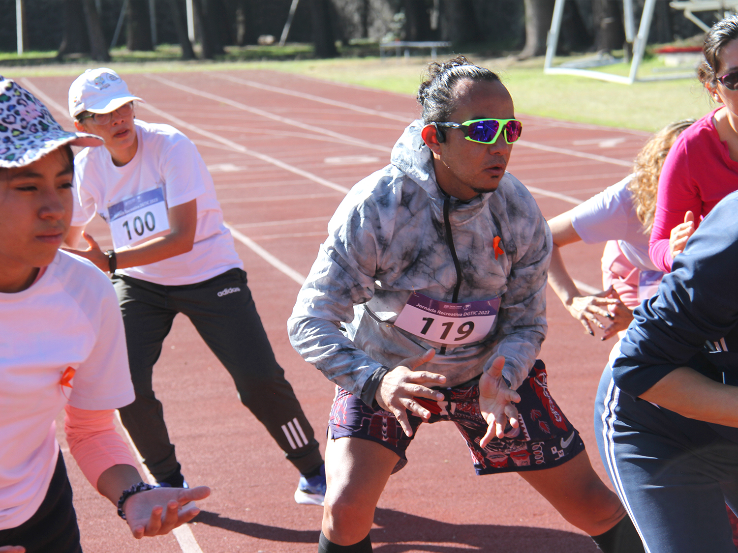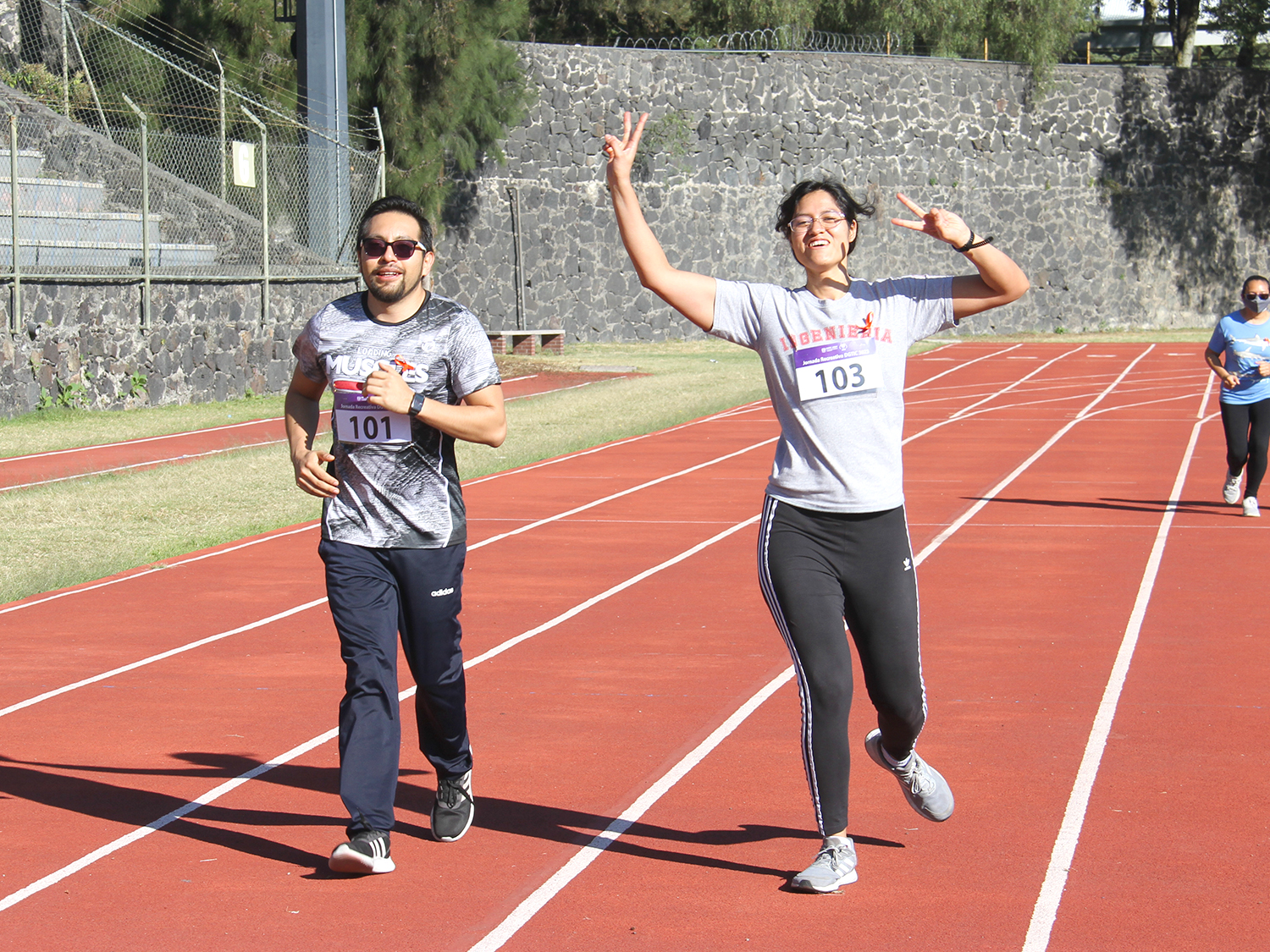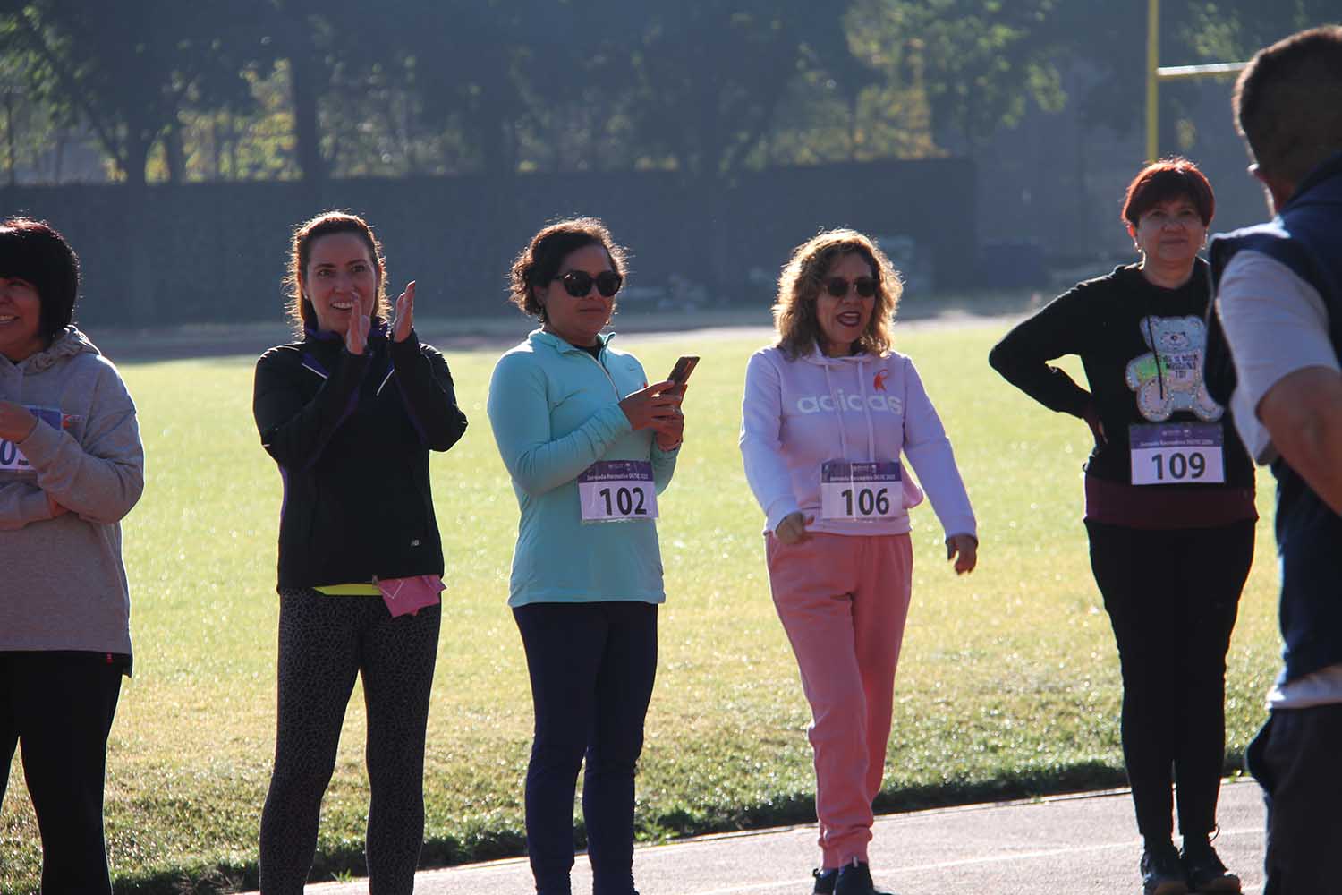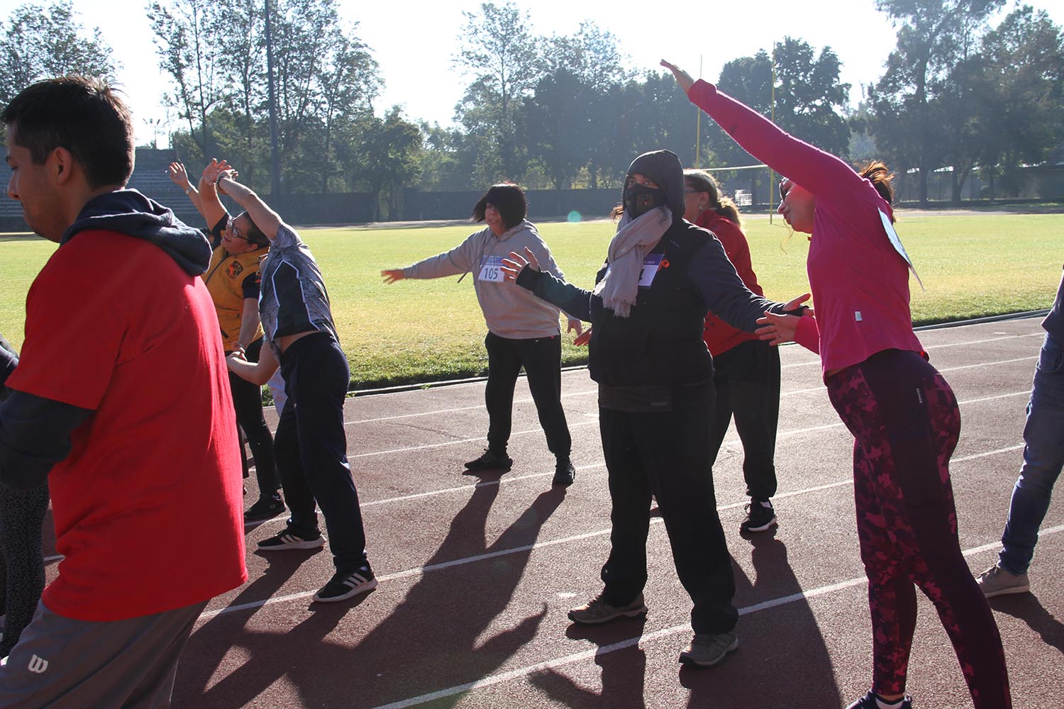 La jornada inició con ejercicios de movilidad y calentamiento a cargo de Miguel Ángel Ramírez Hernández, instructor de la Dirección General del Deporte Universitario (DGDU), quien realizó dinámicas divertidas y de integración que prepararían a los participantes para arrancar la carrera-caminata, la cual consistió en correr, trotar o caminar durante 30 minutos en la pista de tartán, disfrutando del sol y del clima fresco que favoreció el evento.