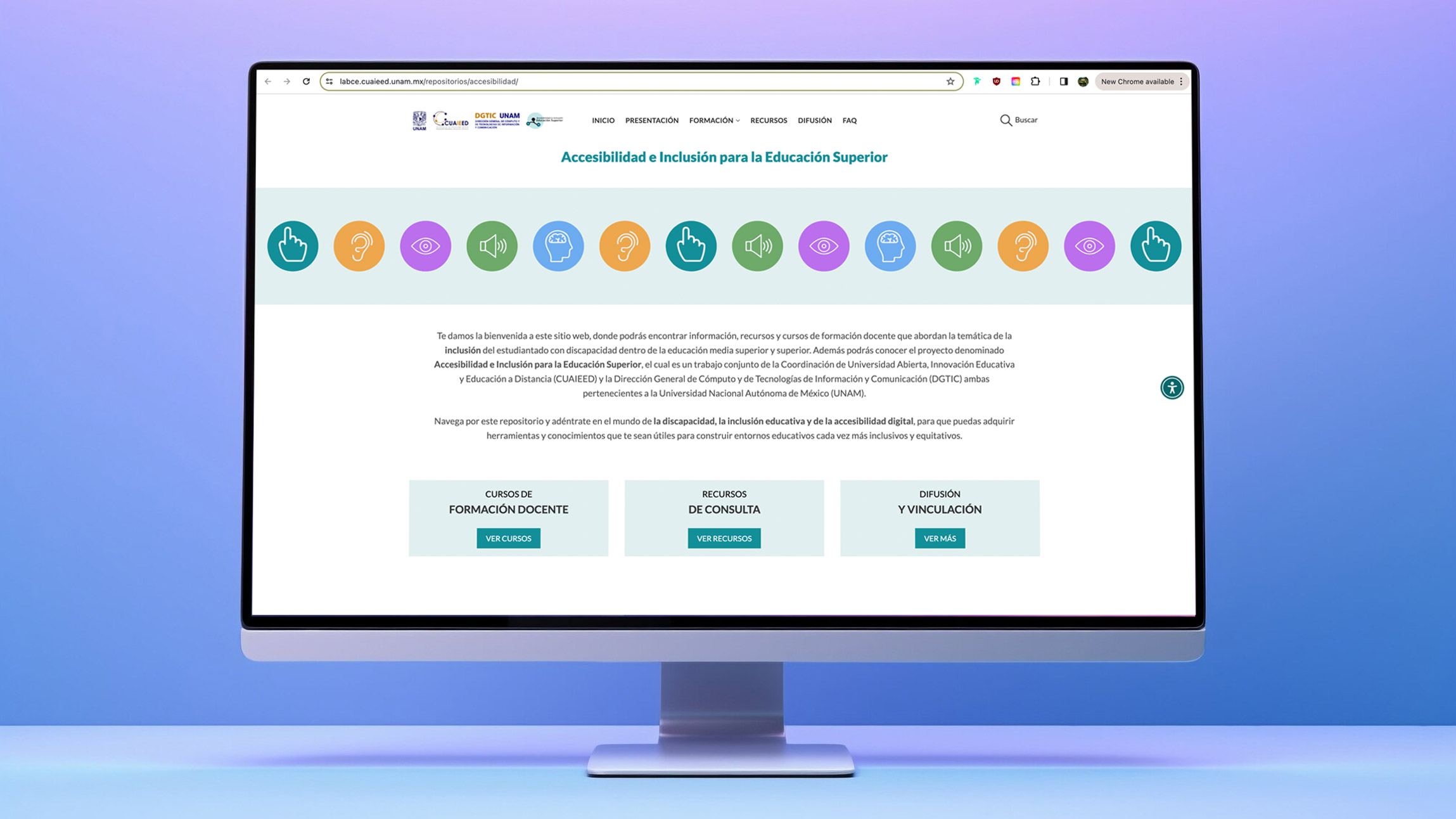 Como resultado del proyecto se logró que la plataforma del PAI implemente las mejoras de accesibilidad identificadas en el estudio diagnóstico, además de obtener la información para la creación de cursos de formación docente.