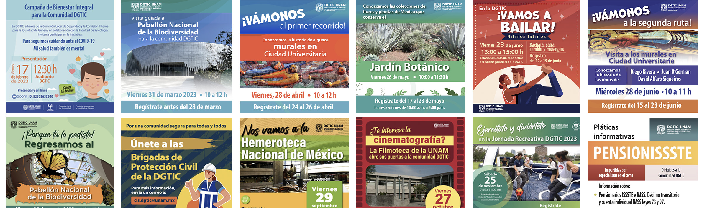 - Se organizó la campaña Bienestar Integral para la Comunidad DGTIC. Esta iniciativa tuvo como propósito ofrecer herramientas a los integrantes de la dependencia para afrontar las secuelas emocionales asociadas al fin de la emergencia sanitaria por Covid-19.