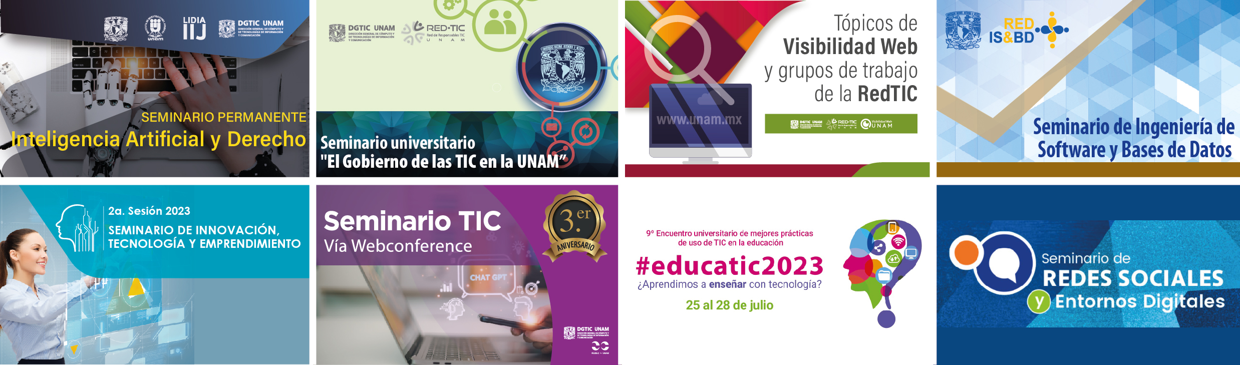 - Seminario de Ingeniería de Software y Bases de Datos. Con el objetivo de fortalecer el intercambio, desarrollo y aplicación de software de calidad en la Universidad; en 2023 se desarrolló un nuevo esquema de colaboración entre expertos TIC de la UNAM, quienes a través de nueve sesiones virtuales hicieron aportaciones de valor en temáticas como: Nuevas Perspectivas; Automatización de los servicios de las bibliotecas del SIBIUNAM con Koha 21; Un esfuerzo conjunto: Congreso Internacional en Evaluación y Dirección Ética de Proyectos Públicos y Sociales y; Cómo y por qué nacen los Cuadernos Técnicos Universitarios de la DGTIC.
