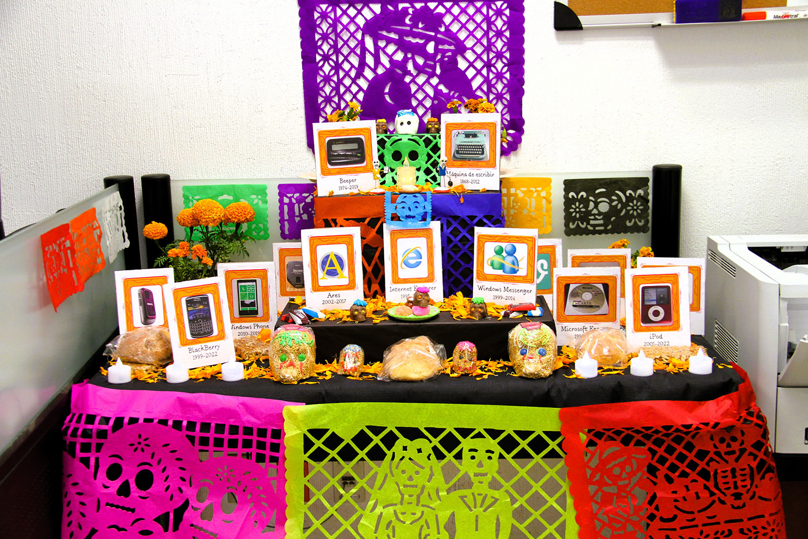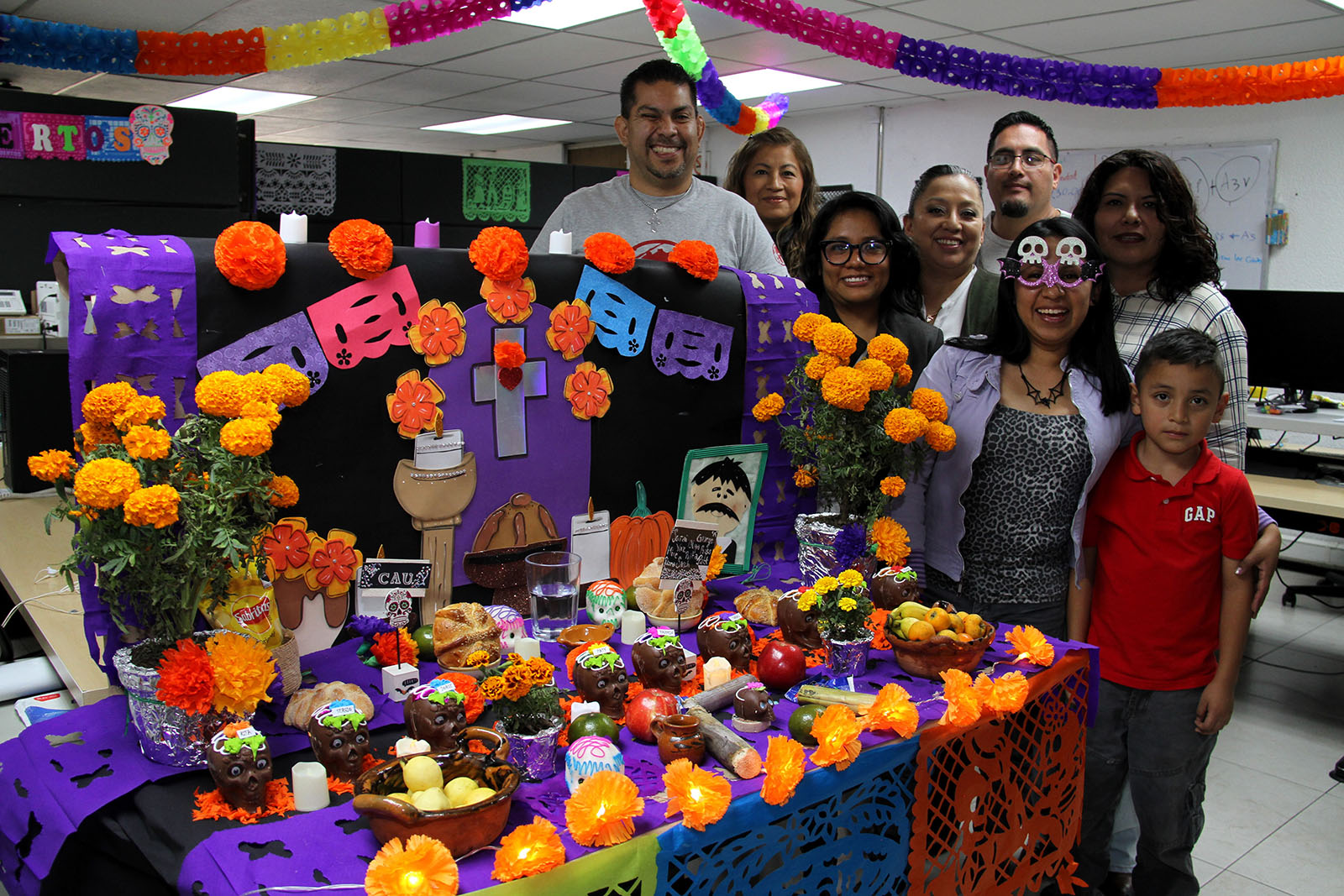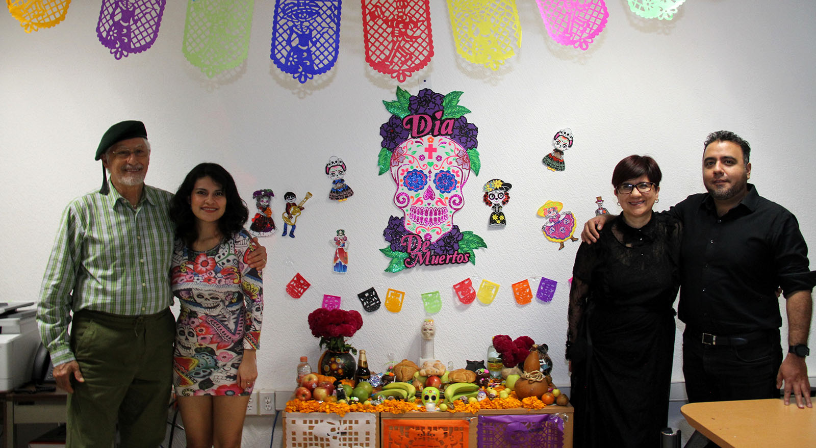 Mientras se esperaba la visita de los amigos y familiares que han partido, distintas catrinas y otras almas disfrazadas rondaron los pasillos de la dependencia, disfrutando de las ofrendas colocadas en los distintos espacios de trabajo, decoradas de forma divertida y tradicional con flores, pan de muerto y calaveritas de rico amaranto, azúcar y chocolate.