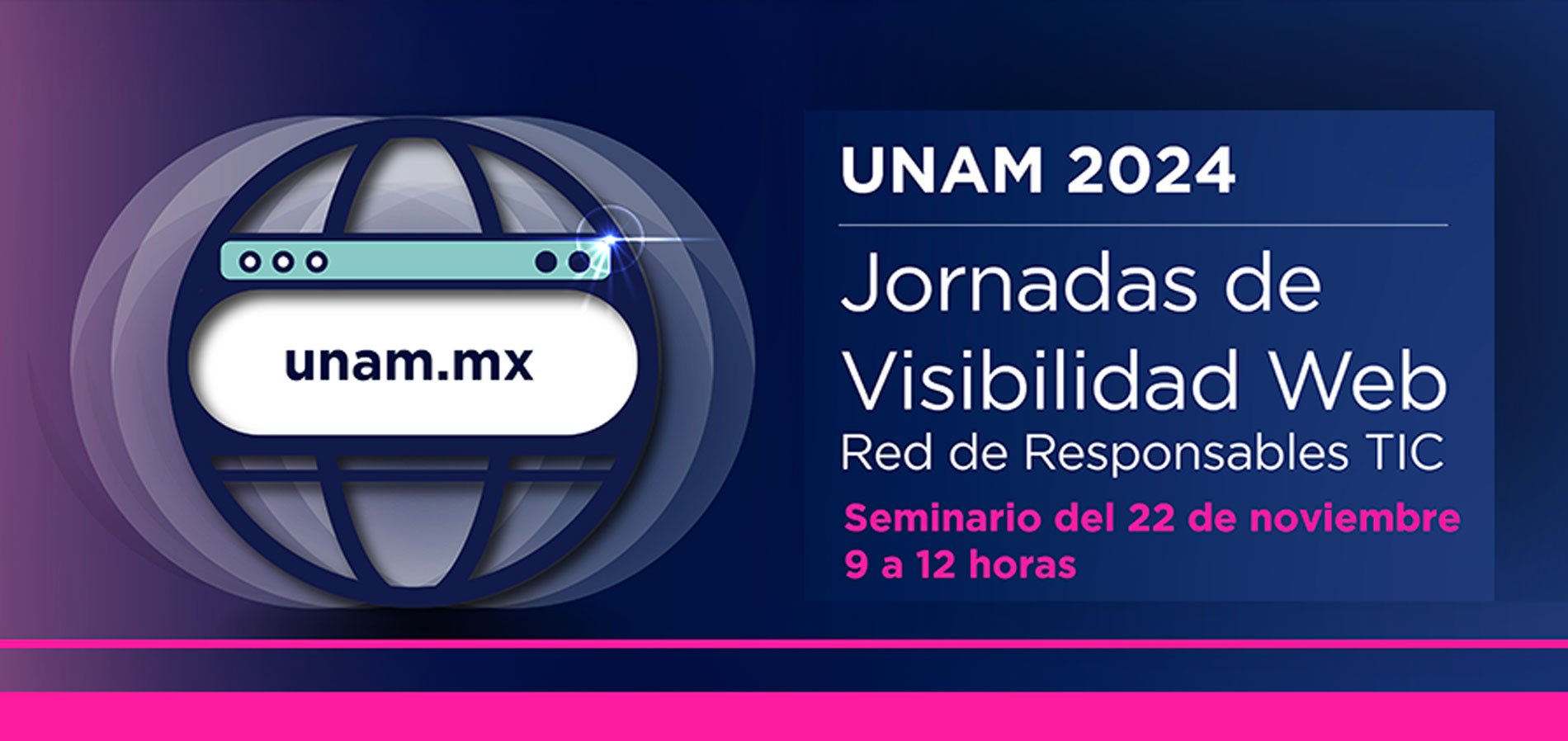 El pasado 22 de noviembre de 2024, se llevó a cabo la sesión “UNAM 2024: Jornadas de Visibilidad Web y Red de Responsables TIC”, en la que participaron 200 asistentes de 90 áreas universitarias.