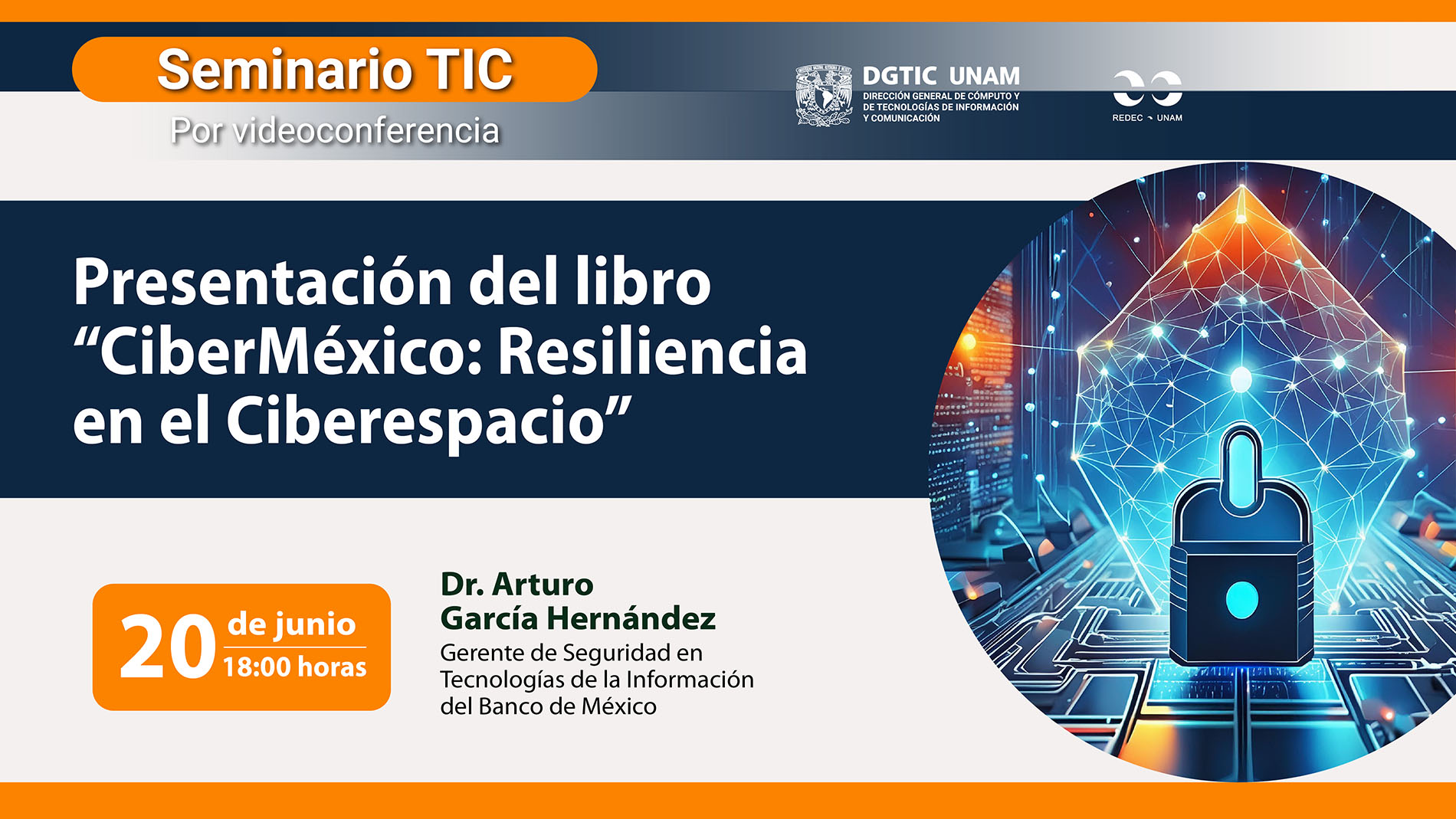 El gerente de seguridad en TIC del Banco de México, Arturo García Hernández, presentó su libro “CiberMéxico: Resiliencia en el Ciberespacio” en el marco del Seminario TIC.