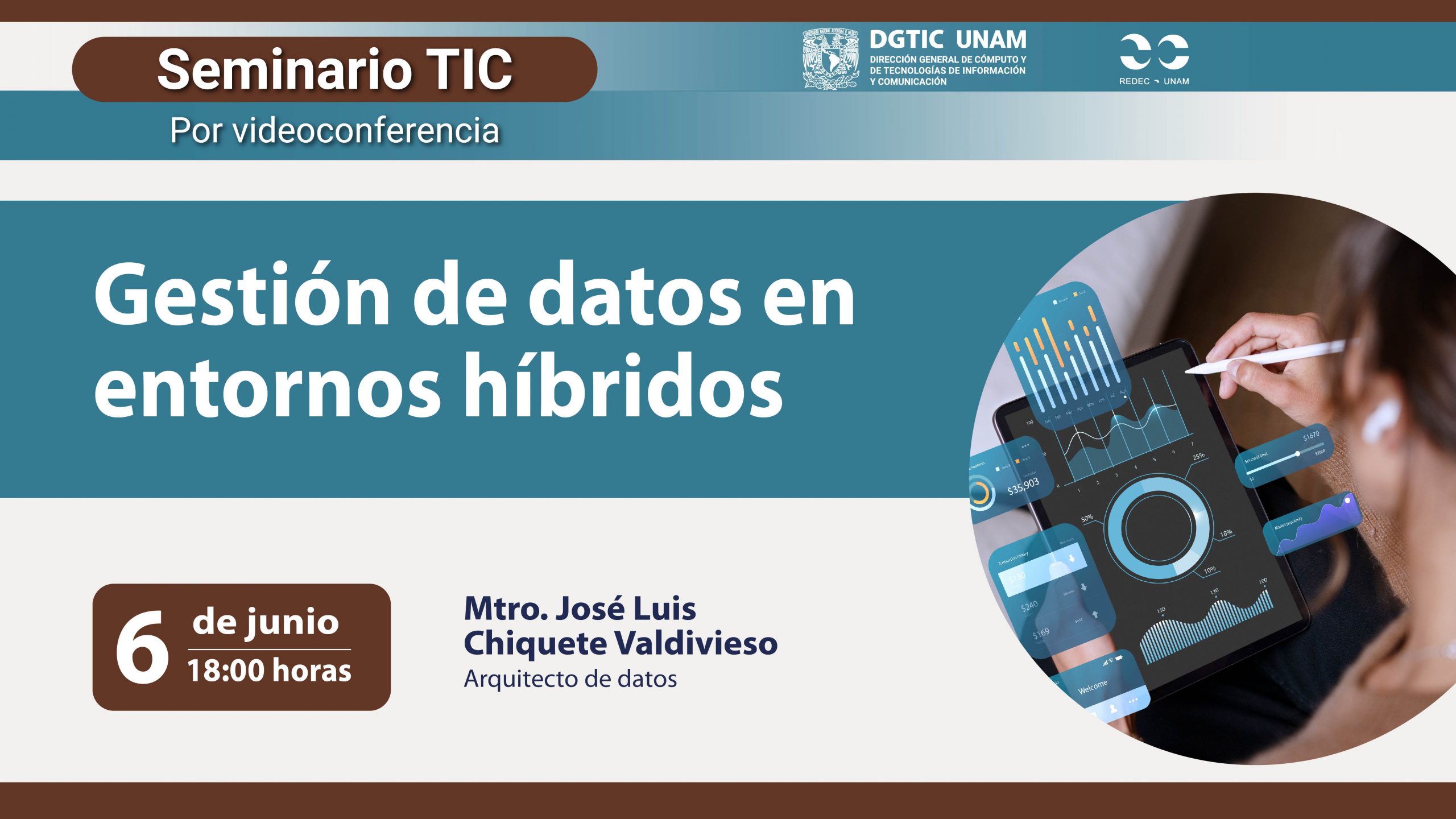 El Seminario TIC es organizado por la Dirección de Docencia en Tecnologías de Información y Comunicación (DDTIC) de la DGTIC. La charla completa se puede consultar en el canal Aprende TIC UNAM, en YouTube https://www.youtube.com/watch?v=mQ52X2x2pEQ&t=1554s