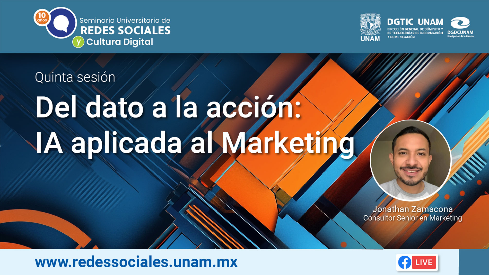 La inteligencia artificial (IA) está transformando el marketing al automatizar tareas, personalizar experiencias y anticipar comportamientos. Así lo explicó Jonathan Zamacona, especialista en estrategia digital, durante la quinta sesión del Seminario Universitario de Redes Sociales y Cultura Digital, titulada “Del dato a la acción: IA aplicada al marketing”.