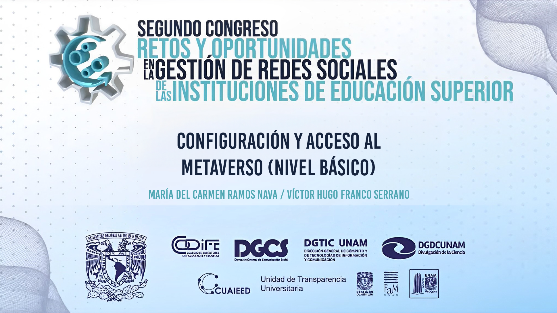 Con el tema metaverso y experiencias de Realidad Virtual (RV), académicos de la Dirección de Innovación en Tecnologías para la Educación (DITE) de la DGTIC participaron en el Segundo Congreso Retos y Oportunidades en la Gestión de Redes Sociales de las Instituciones de Educación Superior.