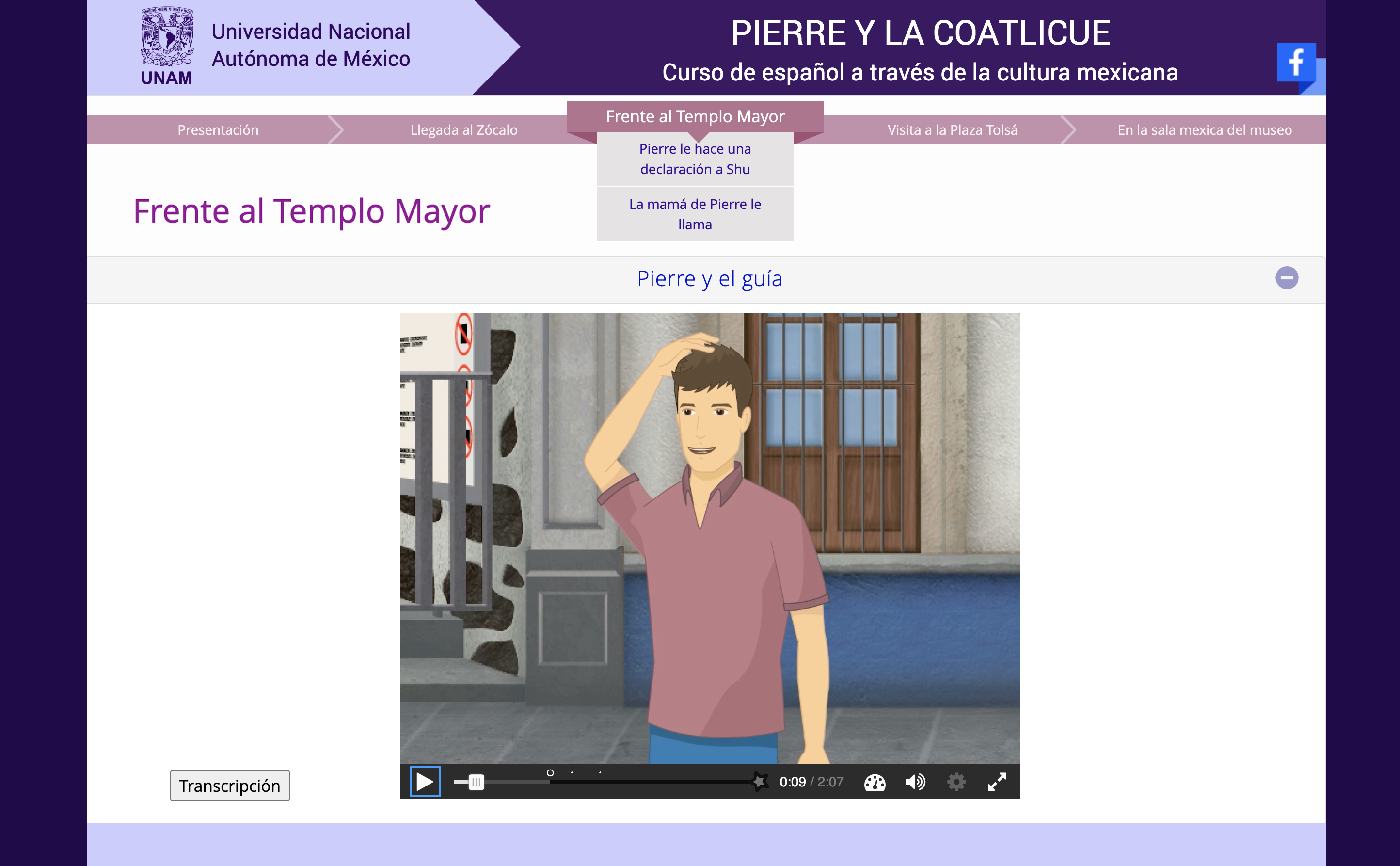 Esto implicó planear un curso totalmente diferente, para que fuese completamente a distancia tuvieron que programarlo desde cero. Del CD-ROM original se recuperaron una serie de animaciones que relataban la historia de Pierre en búsqueda de la Coatlicue, así como diferentes textos de historia del programa original.